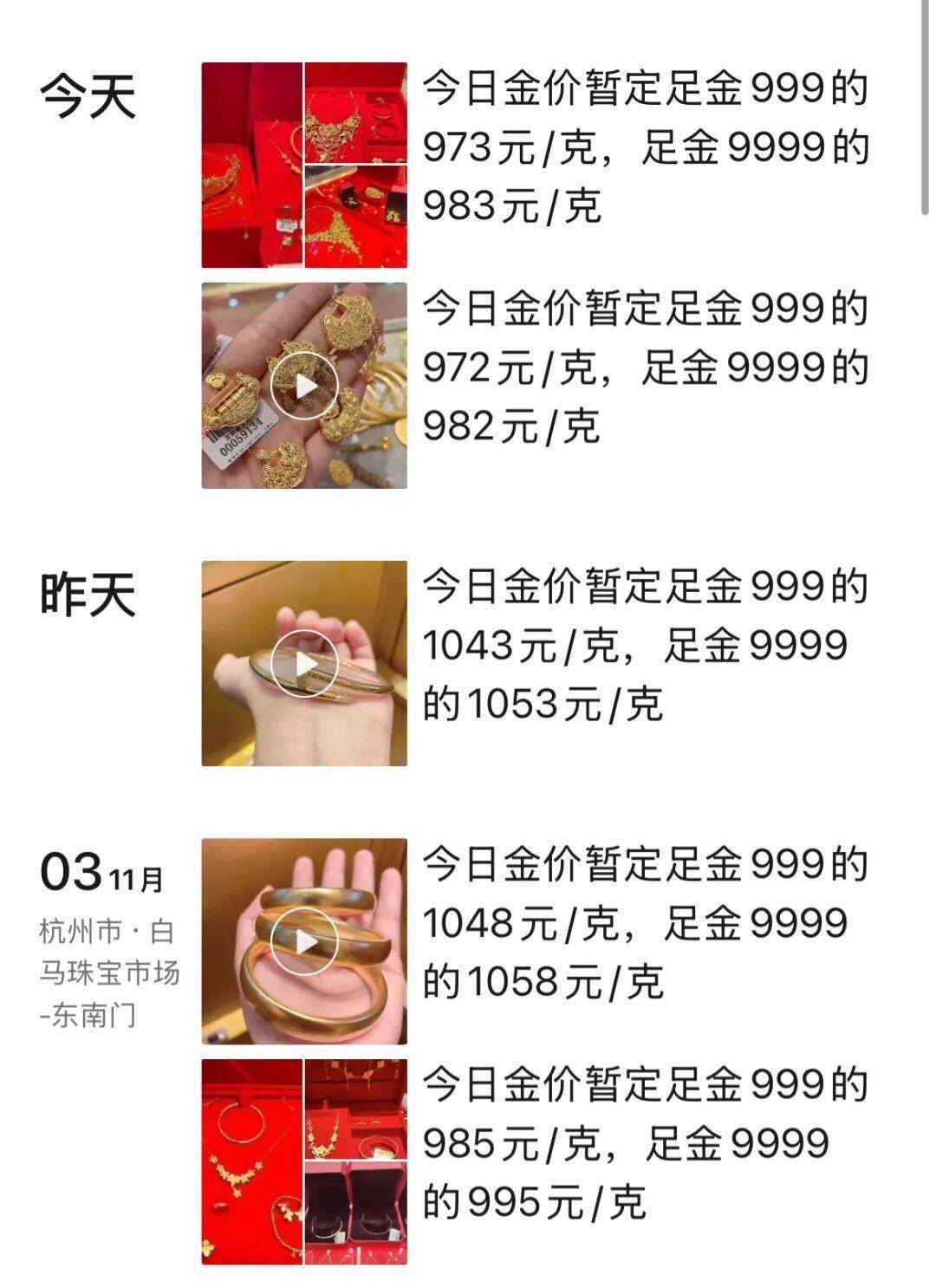 今天上午,杭州白马珠宝市场商家发布了最新的足金挂牌价:今日金价暂定足金999的973元/克,足金9999的983元/克。相比昨天,足金挂牌价一夜暴跌70元/克。