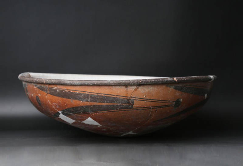 蒋家遗址出土的彩陶盆。陕西省考古研究院供图