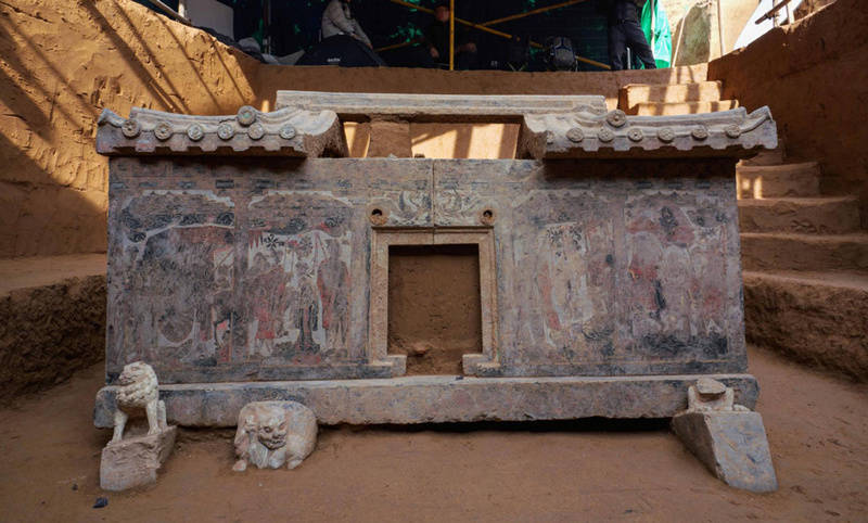 西安百花村北周成夫人墓考古现场。陕西省考古研究院供图