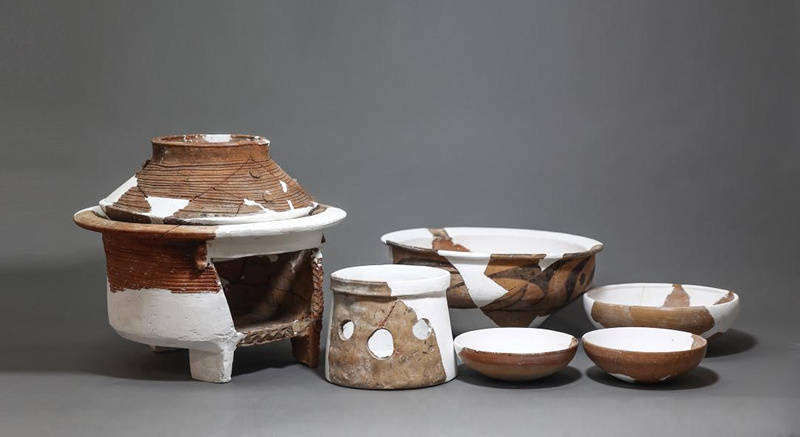 蒋家遗址庙底沟文化陶器组合。陕西省考古研究院供图