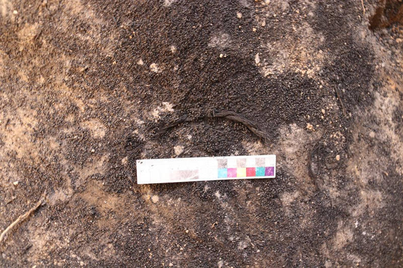 罗家河遗址发掘出土的秸秆编织物。陕西省考古研究院供图