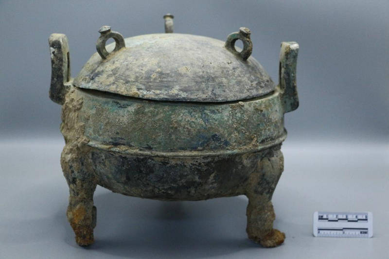 梁鹿坪遗址出土的铁足铜鼎。陕西省考古研究院供图