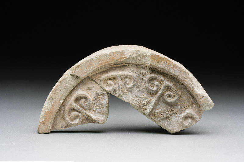 统万城遗址考古发现的陶羊角云纹瓦当残片。陕西省考古研究院供图