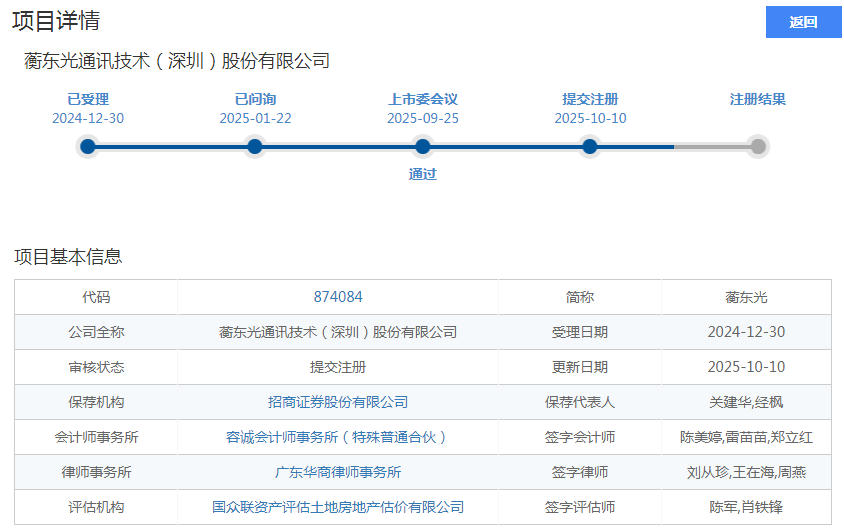10月10日,蘅东光北交所IPO提交注册股票配资炒股论坛,公司冲击上市进入最后一关。